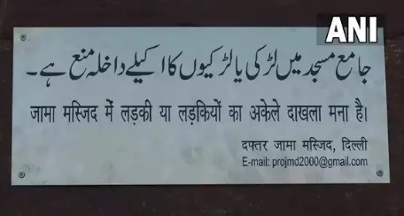 दिल्लीच्या जामा मशिदीमध्ये एकट्या मुलीसह महिलांच्या समूहाला प्रवेशबंदी करण्यात आली आहे. मशीद प्रशासनाने घेतलेल्या या निर्णयाचा विरोध करण्यात येत आहे. मशीद परिसरात व्हिडीओ रेकॉर्ड करण्यासही बंदी घालण्यात आली आहे. मशीद प्रशासनाचा हा निर्णय आक्रमक असल्याची प्रतिक्रिया नागरिकांमध्ये उमटली आहे.