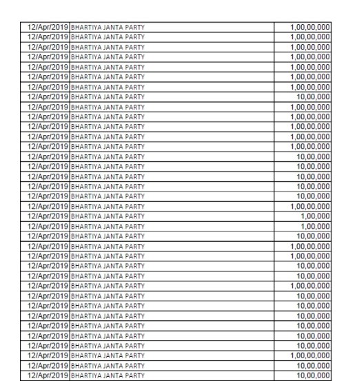 निवडणूक आयोगाने त्यांच्या संकेतस्थळावरून जाहीर केलेल्या माहितीनुसार भारतीय जनता पार्टीच्या नावे ८,६३३ नोंदी आहेत. म्हणजेच भाजपाला ८,६३३ निवडणूक रोख्यांच्या माध्यमातून कोट्यवधी रुपये मिळाले आहेत. तर काँग्रेसच्या नावे ३,१४५ नोंदी आहेत. यामध्ये देशभरातील बहुसंख्या पक्षांच्या नोंदी आहेत. महाराष्ट्रातील राष्ट्रवादी काँग्रेस पार्टी आणि शिवसेनेच्या नावानेदेखील नोंदी आहेत.