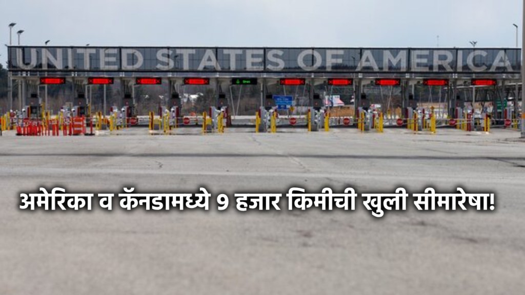рдЕрдореЗрд░рд┐рдХрд╛ рд╡ рдХреЕрдирдбрд╛ рдпрд╛рдВрдЪреНрдпрд╛рдд рдЬрд╡рд│рдкрд╛рд╕ реп рд╣рдЬрд╛рд░ рдХрд┐рд▓реЛрдореАрдЯрд░рдЪреА рдЦреБрд▓реА рд╕реАрдорд╛рд░реЗрд╖рд╛ рдЖрд╣реЗ. рд╣реА рдЬрдЧрд╛рддрд▓реА рд╕рд░реНрд╡рд╛рдд рд▓рд╛рдВрдм рдЕрд╢реА рдЦреБрд▓реА рд╕реАрдорд╛ рдорд╛рдирд▓реА рдЬрд╛рддреЗ. рдореЗрдХреНрд╕рд┐рдХреЛ рд╡ рдЕрдореЗрд░рд┐рдХреЗрдЪреНрдпрд╛ рд╕реАрдореЗрдкреЗрдХреНрд╖рд╛ рд╣реА рд╕реАрдорд╛ рджреБрдкреНрдкрдЯ рддрд░ рднрд╛рд░рдд рд╡ рдЪреАрдирдЪреНрдпрд╛ рейрекрежреж рдХрд┐рд▓реЛрдореАрдЯрд░рдЪреНрдпрд╛ рд╕реАрдореЗрдкреЗрдХреНрд╖рд╛ рдЬрд╡рд│рдкрд╛рд╕ рддрд┐рдкреНрдкрдЯ рд▓рд╛рдВрдмреАрдЪреА рд╣реА рдЦреБрд▓реА рд╕реАрдорд╛ рдЖрд╣реЗ.