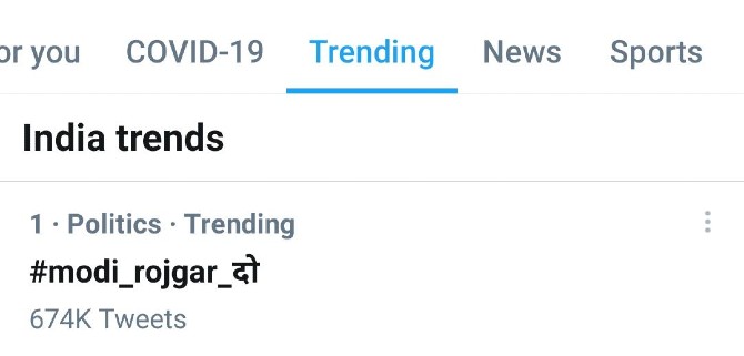 देशामधील बेरोजगारी दिवसोंदिवस वाढत असून याच समस्येला कंटाळलेल्या अनेकांनी आता थेट सोशल मीडियाच्या माध्यमातून पंतप्रधान मोदींकडेच नोकऱ्या देण्याची मागणी केलीय. ‘मोदी रोजगार दो’ हा हॅशटॅग रविवारपासून सोशल नेटवर्किंगवर ट्रेण्ड होताना दिसत आहे. या हॅशटॅगवर सहा लाख ७४ हजारांहून अधिक जणांनी ट्विट केलं आहे. अनेकांनी भाजपाने सत्तेत येताना दोन कोटी नोकऱ्या देण्याचं आश्वासन दिलेलं त्याचं काय झालं असा प्रश्न विचारला आहे. राजकीय विषयांमध्ये मोदी रोजगार दो हा हॅशटॅग भारतात टॉप ट्रेण्डींग विषय आहे.