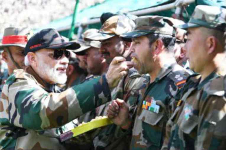 जम्मू-काश्मीरच्या सीमेवरील राजौरी भागात मोदी सध्या जवानांसोबत दिवाळी साजरी करीत आहेत.