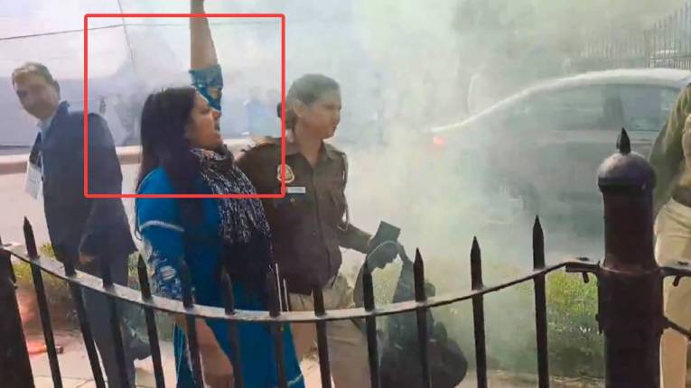 आज लोकसभेत एक धक्कादायक घटना घडली. हिवाळी अधिवेशनाचा शून्य प्रहर संपण्याच्या काही मिनिटं आधी दोन तरुणांनी अचानक लोकसभेत एका बेंचवरुन दुसरीकडे उड्या मारल्या आणि पिवळ्या रंगाचा धूर स्मोक कॅनमधून सगळीकडे पसरवला. या घटनेमुळे सगळीकडे एकच हलकल्लोळ उडाला सगळे खासदार बाहेर निघून गेले आणि संसदेचं कामकाजही तहकूब करण्यात आलं होतं. त्यानंतर या दोघांनाही ताब्यात घेण्यात आलं. या सगळ्या प्रकारादरम्यान संसदेच्या बाहेर एक महिला घोषणाबाजी करत होती. या महिलेचं नाव आता समोर आलं आहे. तसंच तिने या घोषणा आणि गुलाबी रंगाचा धूर का पसरवला ते देखील तिनेच सांगितलं आहे.