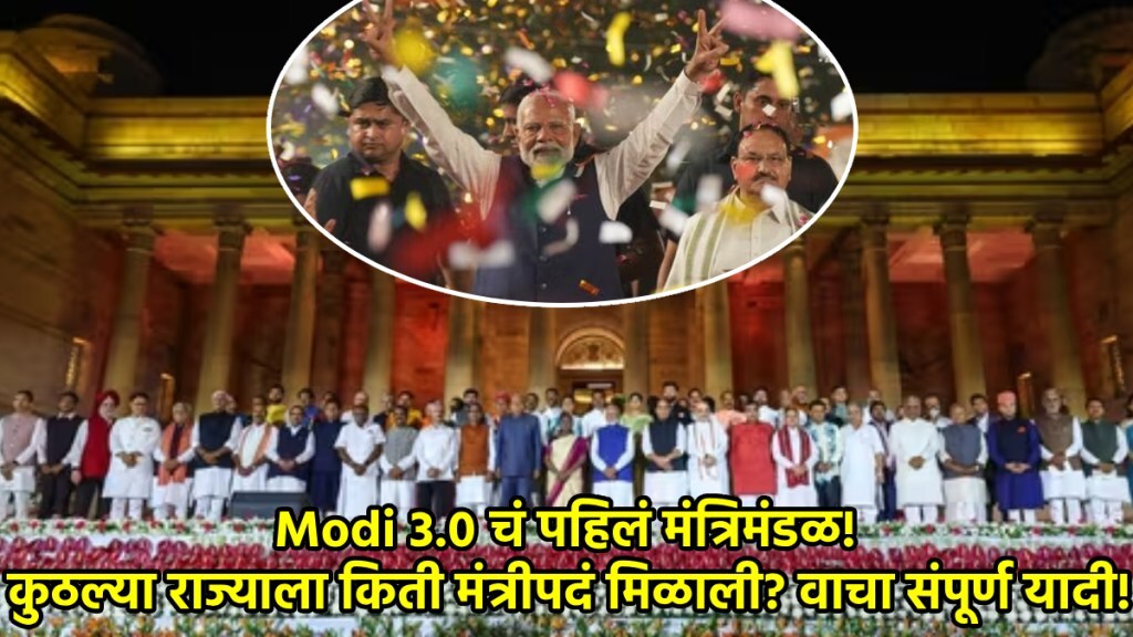 रविवारी संध्याकाळी पंतप्रधान नरेंद्र मोदी यांच्यासह एकूण ७१ नवनिर्वाचित खासदारांनी पदाची शपथ घेतली. मोदी वगळता उरलेल्या ७० मंत्र्यांपैकी ६० मंत्री हे भाजपाचे आहेत. इतर १० मंत्र्यांमध्ये नितीश कुमारांची जेडीयू, चंद्राबाबू नायडूंची टीडीपी, रामदास आठवलेंची रिपाइं, एकनाथ शिंदेंची शिवसेना अशा इतर मित्रपक्षांचा समावेश आहे. ही मंत्रीपदं कॅबिनेट मंत्री, स्वतंत्र प्रभार राज्यमंत्री व इतर राज्यमंत्री अशी विभागली गेली आहेत. मात्र, त्यातही राज्यनिहाय मंत्रीपदांची कशी विभागणी झाली आहे, याची चर्चा सध्या पाहायला मिळत आहे.