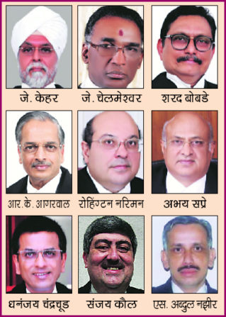 • आपले पूर्वीचे निकाल बदलण्याचा सर्वोच्च न्यायालयाचा ‘चांगला दृष्टिकोन’ या निकालातून दिसून आला असल्याचे सांगून, ज्येष्ठ वकील सोली सोराबजी यांनी ९ सदस्यांच्या खंडपीठाने एकमताने दिलेल्या या निकालाचे स्वागत केले. लोकांच्या मूलभूत हक्कांचे संरक्षण करणारा हा अतिशय पुरोगामी निकाल आहे, असे माजी अ‍ॅटर्नी जनरल असलेले सोराबजी म्हणाले.