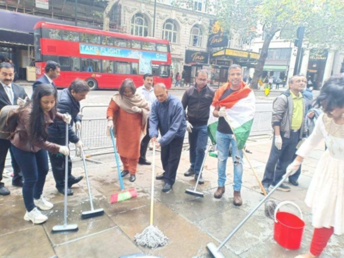 लंडनमधील भारतीय उच्चायुक्तालय आणि तेथील स्थानिक भारतीयांनी तेथे आगळ्यावेगळ्या प्रकारे स्वच्छ भारत मोहिम राबवली. पाकिस्तानी समर्थकांनी ३ सप्टेंबर रोजी भारतीय उच्चायुक्तालयासमोर केलेल्या आंदोलनानंतर झालेला कचरा भारतीयांनी साफ केला.