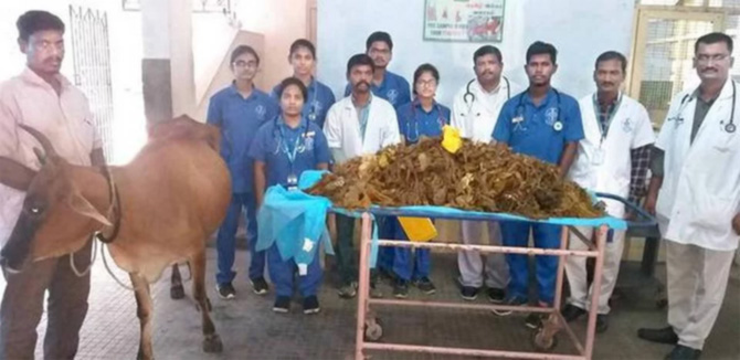 तामिळनाडूमधील पशुवैद्यकीय आणि प्राणी विज्ञान विद्यापीठातील डॉक्टरांनी एका गाईवर शस्त्रक्रिया करुन तिच्या पोटातून चक्क ५२ किलो प्लास्टिक बाहेर काढले आहे. या गायीवर डॉक्टरांनी पाच तास शस्त्रक्रिया केली.