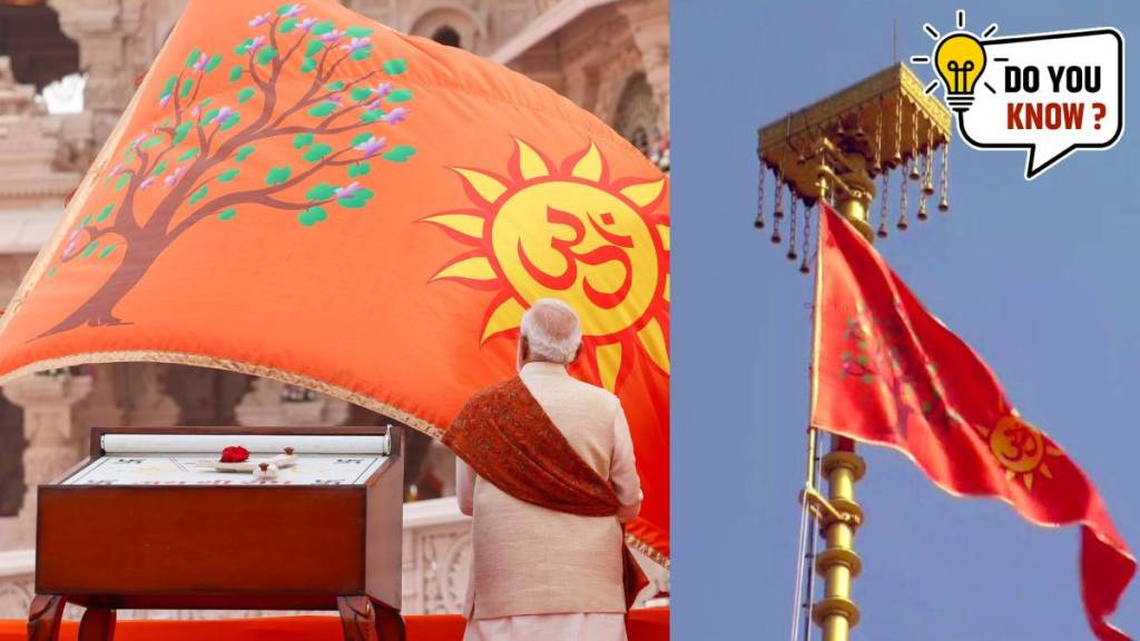 Kovidar Tree Symbol on Ayodhya Ram Mandir Dharma Dhwaj : अयोध्येतील राम मंदिराच्या बांधकामाच्या पूर्णत्वाचं प्रतीक म्हणून पंतप्रधान नरेंद्र मोदी यांच्या हस्ते मंदिराच्या शिखरावर ध्वजारोहण करण्यात आलं. गेल्या वर्षी, जानेवारी २०२४ मध्ये पंतप्रधान मोदींच्या हस्ते या मंदिरातील रामलल्लाच्या मूर्तीची प्राणप्रतिष्ठापना करण्यात आली होती. परंतु, तेव्हा या मंदिराचं बांधकाम पूर्ण झालं नव्हतं. अपूर्ण राहिलेलं बांधकाम गेल्या दोन वर्षांमध्ये पूर्ण करण्यात आलं आणि आज त्या मंदिरावर मोदी यांच्या हस्ते औपचारिकरित्या ध्वज लावला गेला. या ध्वजावर कोविदार वृक्ष आणि सूर्य प्रतिमा आहे. कोविदार वृक्ष म्हणजे काय? त्याचं रामराज्यातील महत्त्व काय? आपण जाणून घेऊ.