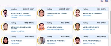 मुंबईतील दक्षिण मतदारसंघात ठाकरे सेना विरुद्ध शिंदे सेना अशी लढत आहे. या लढतीत यामिनी जाधव मागे पडल्या असून अरविंद सावंत आघाडीवर आहेत.
