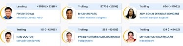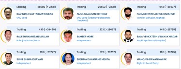 ठाण्यातील शिवसेनेचे उमेदवार नरेश मस्के १० हजार १७३ मतांनी आघाडीवर. राजन विचारे सुरुवातीपासून पिछाडीवर.