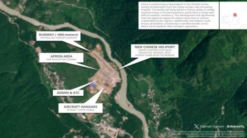 भूस्थानिक विश्लेषक डेमियन सायमन यांनी त्यांच्या ‘detresfa’ या एक्स खात्यावर अलीकडेच काही छायाचित्रे शेअर केली. यात स्पष्टपणे दिसून आले की, चीनकडून अरुणाचल प्रदेशजवळ हेलीपोर्टचे बांधकाम सुरू आहे. उपग्रह छायाचित्रात दिसून येते की, अरुणाचल प्रदेशच्या ‘फिशटेल’ क्षेत्राजवळ हे बांधकाम होत आहे. ‘एनडीटीव्ही’ने आपल्या वृत्तात सांगितले की, हेलीपोर्ट तिबेट स्वायत्त प्रदेशातील निंगची प्रांतातील गोंगरीगाबू क्यू नदीच्या काठावर आहे. विशेष म्हणजे, डिसेंबर २०२३ पर्यंत या प्रदेशात कोणतेही बांधकाम झाले नव्हते. परंतु, छायाचित्रात १६ सप्टेंबरपासूनच्या बांधकामाचे प्रगत टप्पे दिसून येत आहेत.