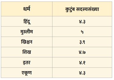 धर्मनिहाय सरासरी कुटुंब सदस्यसंख्या