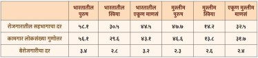 मुस्लिमांचा रोजगारातील सहभागाचा दर, कामगार लोकसंख्या गुणोत्तर दर व बेरोजगारीचा दर