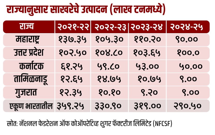 महाराष्ट्रात सर्वांत जास्त कोणत्या पिकाला महत्त्व असेल तर ते म्हणजे ऊस. महाराष्ट्र हे भारतातील सर्वांत मोठे साखर उत्पादक राज्य आहे. मात्र, २०२४-२५ या काळात (सप्टेंबर-ऑक्टोबर) उत्तर प्रदेश अव्वल स्थानावर आहे. गेल्या वर्षीचा दुष्काळ याला कारणीभूत असल्याचे सांगितले जात आहे. ऊस हे १२-१८ महिने कालावधीचे पीक आहे. गिरण्यांचा गाळप कालावधी पुढील महिन्यापासून सुरू होईल. महाराष्ट्रातील शेतकरी एक तर १२ महिन्यांसाठी म्हणजेच जानेवारीत किंवा १५ महिन्यांच्या पूर्वहंगामी (जुलै-डिसेंबर) किंवा १८ महिन्यांच्या आडसाली (एप्रिल-जून) ऊसाची लागवड करतात. या वेळच्या चांगल्या पावसाचा फायदा २०२५-२६ च्या साखर वर्षात गाळप झालेल्या ऊसालाच झाल्याचे दिसून येईल.