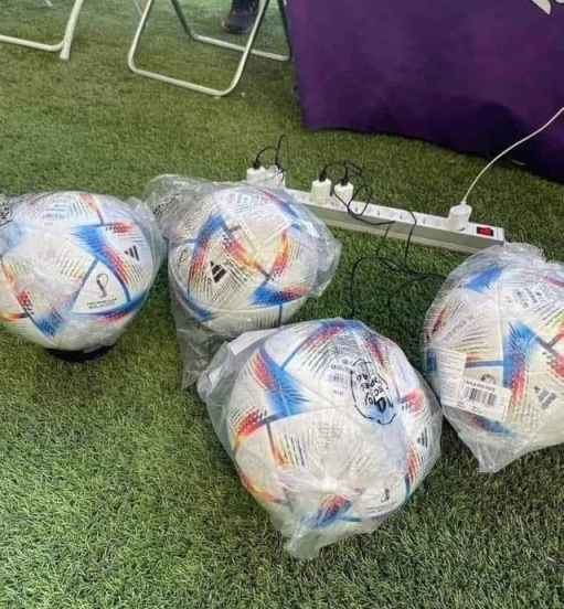 ‘रेडइट’वर एका युझरने अपलोड केलेल्या फोटोमध्ये विश्वचषक फुटबॉल सामन्याआधी चार चेंडू मोबाईलप्रमाणे चार्ज केले जात असल्याचं दिसत आहे. या चेंडूंमधील सेन्सर्स हे १४ ग्राम वजनाचे असतात. या सेन्सर्सच्या मदतीने सामन्यादरम्यान चेंडूंच्या हलचालींचा वेध घेता येतो. मैदानाच्या चहुबाजूंनी मैदानातील घडामोडींवर कॅमेराची नजर असतानाच या चेंडूंमधील तंत्रज्ञानामुळे मैदानावरील पंचांना ऑफसाइड आणि खेळासंदर्भातील इतर निर्णय घेण्यास मदत होते.