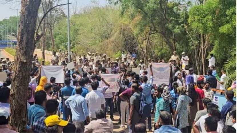 ३० मार्च रोजी सरकारने जंगलातील जमीन साफ करण्याचे आदेश दिले. त्यासाठी जवळजवळ ५० मातीकाम कामगार विद्यापीठाच्या परिसरात गेले. विद्यार्थ्यांनी त्यांचे काम रोखू नये म्हणून बॅरिकेडिंगसुद्धा केले गेले. त्यानंतर विद्यार्थी आक्रमक झाले आणि विद्यापीठ परिसरात आंदोलनाला सुरुवात झाली. या प्रकरणात ५३ विद्यार्थ्यांना पोलिसांनी ताब्यात घेतले. आंदोलक व पोलिसांमध्ये चकमक झाली आणि अनेक विद्यार्थी जखमी झाले. असे असूनही कामगारांनी आपले काम सुरूच ठेवले. त्यानंतर विद्यार्थी संघटनेकडून संपाची घोषणा करण्यात आली. सोशल मीडियामुळे या प्रकरणाकडे संपूर्ण देशाचे लक्ष वेधले गेले आणि सर्व स्तरांतून विरोध होण्यास सुरुवात झाली. त्यानंतर तेलंगणा उच्च न्यायालयात दोन जनहित याचिका (पीआयएल) दाखल करण्यात आल्या.