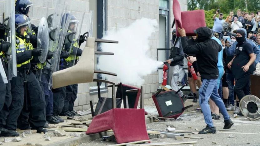United Kingdom Riot ब्रिटनमध्ये पुन्हा एकदा दंगली सुरू झाल्या आहेत. ब्रिटनमध्ये दंगली होणे किंवा हिंसक आंदोलन होणे काही नवीन नाही. परंतु, ही १३ वर्षांतील सर्वात मोठी दंगल असल्याचे बोलले आत आहे. उत्तर-पश्चिम इंग्लंडमध्ये तीन मुलींच्या हत्येनंतर ब्रिटनमध्ये हिंसक आंदोलने सुरू आहेत. बुधवारपासून (७ ऑगस्ट) देशभरात १०० हून अधिक मोर्चे निघणार असल्याची माहिती रहिवासी आणि अधिकाऱ्यांनी दिली आहे. या मोर्चांचा ओघ पाहता पोलिसांनी सुरक्षा आणखी वाढवली आहे. वकिलांची कार्यालये, स्त्यावरील दुकाने बंद करण्यात आली आहेत आणि लोकप्रतिनिधींना घरून काम करण्याच्या सूचना देण्यात आल्या आहेत.