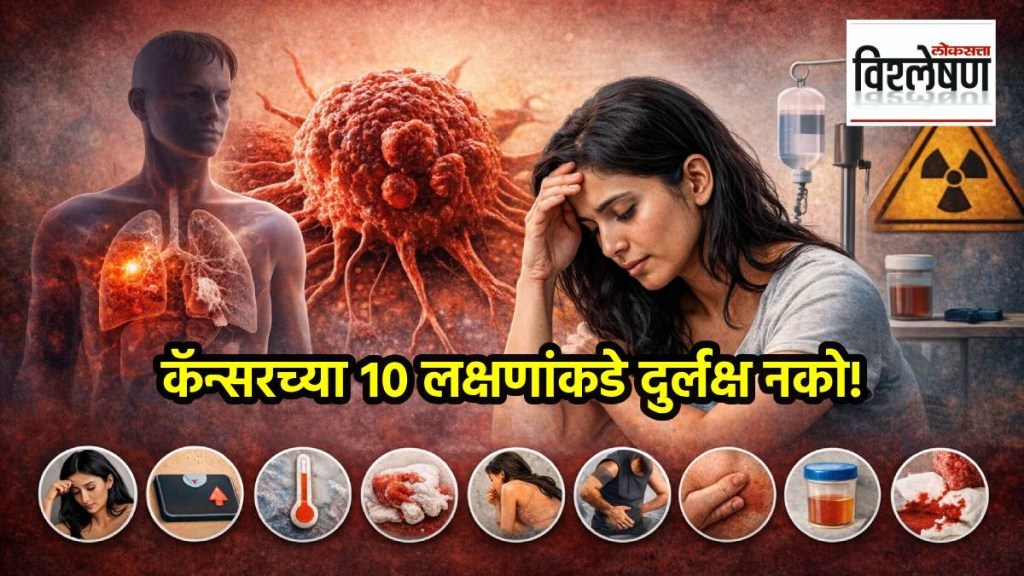 Cancer Symptoms in Marathi : कर्करोगाची वाढती गंभीरता लक्षात घेता त्यावर उपचार व संशोधनाचा सर्वसमावेशक आराखडा तयार करण्यासाठी महाराष्ट्र सरकारने एक महत्वाचा निर्णय घेतला. मुख्यमंत्री देवेंद्र फडणवीस यांच्या अध्यक्षतेखाली काही दिवसांपूर्वी झालेल्या मंत्रिमंडळाच्या बैठकीत कर्करोग उपचार सेवांचा बहुपातळी विस्तार आणि पायाभूत सुविधा उभारणीस मंजुरी देण्यात आली. फडणवीस सरकारच्या या निर्णयामुळे राज्यात कर्करोग उपचार सेवांचे व्यापक जाळे आणि अधिक सक्षम आरोग्यसेवा प्रणाली निर्माण होणार आहे. आज जागतिक कर्करोग दिनाच्या पार्श्वभूमीवर कॅन्सरचा धोका कसा ओळखता येईल? त्याची सुरुवातीची १० लक्षणे कोणती? या संदर्भात घेतलेला हा आढावा…
