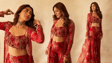 आजकाल पारंपरिक पोशाखासह त्याला मॉडर्न टच देऊन स्त्रिया आधुनिक लूकला प्राधान्य देतात. सध्या फ्यूजन ट्रेंडिंग आहे, त्यामुळे अनेक सेलिब्रिटीज सणासुदीत अशा मॉडर्न येट ट्रेडिशनल पोशाखात दिसतात. यात क्रॉप टॉप आणि त्याखाली प्लाझो किंवा धोती स्कर्ट परिधान करून हा लूक क्रिएट करू शकता. येथे मृणाल ठाकूरने फुलांच्या डिझाइनचा लाल रंगाचा फ्युजन ड्रेस घातला आहे आणि ती खूप सुंदर दिसतेय.