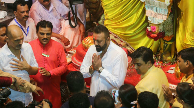 नवसाला पावणाऱ्या लालबागच्या राजाच्या चरणी नतमस्तक होण्यासाठी अभिनेता संजय दत्तनेही हजेरी लावली. संपूर्ण मुंबईचं आणि अनेकांचच आराध्य दैवत असणाऱ्या लालबागच्या राजाच्या चरणी पहिल्या दिवसापासूनच भक्तांची तुडूंब गर्दी पाहायला मिळतेय.