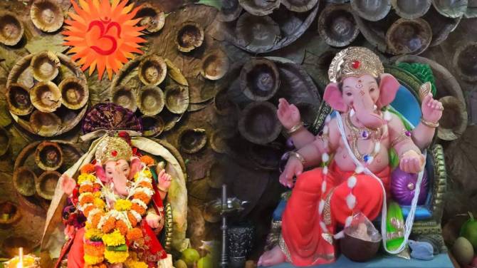 तुमच्याकडे जुन्या पानांच्या पत्रावळ्या व द्रोण असतील किंवा तुमची बाजारातून सुद्धा विकत आणू शकता. भिंतीला एक प्लेन कापड लावा. पत्रावळ्या आणि कापडाला धाग्यांनी शिवून घ्या आणि पत्रावळ्यांच्या मधोमध द्रोण लावून घ्या. अशाप्रकारे तुमचे डेकोरेशन (Ganpati Decoration) तयार.