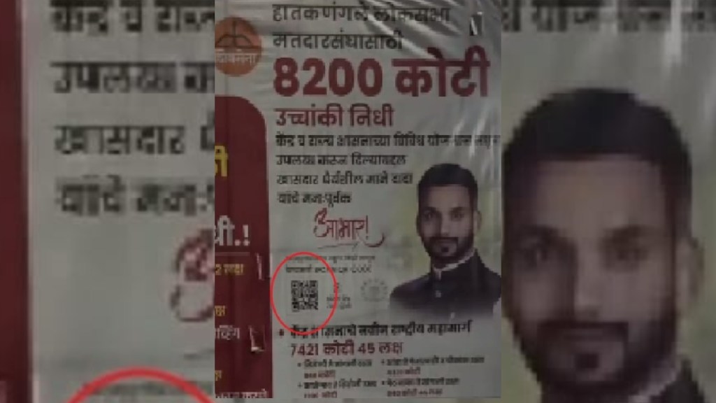कोल्हापूर : हातकणंगलेचे खासदार धैर्यशील माने यांनी मतदारसंघात केलेल्या विकासकामांची माहिती देणाऱ्या फलकावरील क्यूआर कोड मध्ये मूळ माहिती ऐवजी कुटचलनासंदर्भातील (बिटकॉइन) संकेतस्थळ दिसत आहे. तो पाहणाऱ्यांच्या गोंधळ उडत आहे. यामुळे या प्रकाराची चर्चा होत आहे.