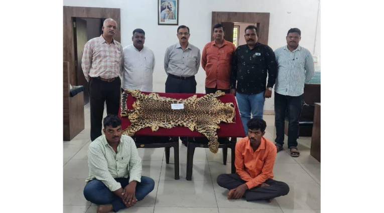 स्थानिक गुन्हा अन्वेषण शाखेला दोन व्यक्ती गारगोटीहून बिबट्याची कातडी विक्री करण्यासाठी दिलेले येथे येणार असल्याची माहिती मिळाली. त्यानुसार पोलीस निरीक्षक संजय गोर्ले यांच्या मार्गदर्शनाखाली संभाजी भोसले, राजीव शिंदे, खंडेराव कोळी, बालाजी पाटील यांच्या पथकाने दिंडनेर्ली फाटा येथे सापळा रचला. संशयित दोघे येतात त्यांना ताब्यात घेतले. मुद्देमालासह त्यांना इस्पुरली पोलीस ठाण्याकडे सोपवण्यात आले आहे.