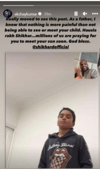 शिखरच्या पोस्टचा फोटो शेअर करत अक्षय कुमारने लिहिले की, “ही पोस्ट वाचून मला खूपच भरून आलं. एक वडील म्हणून मी हे पूर्णपणे समजू शकतो की आपल्या मुलांना भेटता किंवा बघता न येण्याइतकं दुःख कशाचंच नाही. शिखर तू धीर धर, तू तुझ्या मुलाला लवकरच भेटू शकशील यासाठी लाखो लोक प्रार्थना करत आहेत. देव भलं करो.”
