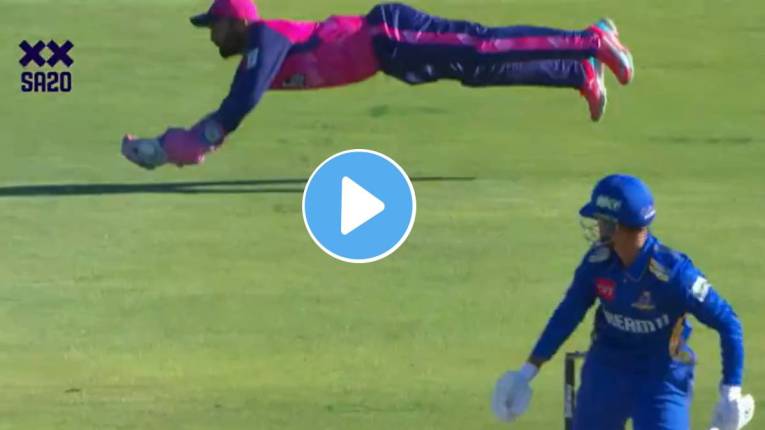 SA20 Dinesh Karthik catch video viral : सध्या दक्षिण आफ्रिकेत एसए२० स्पर्धा खेळली जात आहे. टीम इंडियाचा माजी यष्टीरक्षक फलंदाज दिनेश कार्तिकही या स्पर्धेच्या तिसऱ्या हंगामात खेळत आहे. डीके पार्ल रॉयल्सचे प्रतिनिधित्व करत आहे. स्पर्धेतील नववा सामना एमआय केपटाऊन आणि पार्ल रॉयल्स यांच्यात खेळला गेला. या सामन्यात दिनेश कार्तिकने अप्रतिम फिटनेस दाखवला वयाच्या ३९ व्या वर्षी यष्टीच्या मागे एक अप्रतिम झेल घेतला. या झेलचा व्हिडिओ सोशल मीडियावर तुफान व्हायरल होत आहे.