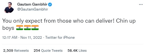 गंभीरने या ट्वीटमध्ये भारतीय झेंड्यांचे तीन इमोजी वापले आहेत. “तुम्ही केवळ त्यांच्याकडूनच अपेक्षा ठेऊ शकता ज्यांच्याकडे त्या पूर्ण करण्याची क्षमता असते. मान अभिमानाने उंच ठेवा,” असं गंभीरने म्हटलं आहे. मात्र त्याने हे ट्वीट आताच्या संघासाठी केलं आहे की आधीच्या संघांसाठी केलं आहे यावरुन चाहत्यांमध्ये संभ्रम आहे. या ट्वीटमध्ये गंभीरने ना भारत विरुद्ध इंग्लंड सामन्याचा संदर्भ दिलाय ना कोणताही हॅशटॅग वापरलाय. त्यामुळेच हे ट्वीट त्याने पाठिंबा देण्यासाठी केलं आहे की खोचक टोमणा मारला आहे यावरुन चाहतेच संभ्रमात आहेत. गंभीरची पोस्ट सध्याच्या भारतीय संघांच्या समर्थनार्थ आहे की खोचक पद्धतीने लिहिली आहे याबद्दल कमेंट्स सेक्शनमध्ये चर्चा सुरु असल्याचं दिसून येत आहे.