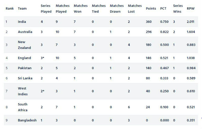 ICC ने आयोजित केलेल्या जागतिक कसोटी अजिंक्यपद स्पर्धेत वेस्ट इंडिजने आपला विजय कसोटी विजय नोंदवला. त्यामुळे ४० गुणांसह त्यांनी गुणतालिकेत आपले खाते उघडले. या स्पर्धेअंतर्गत खेळवण्यात आलेल्या प्रत्येक कसोटी मालिकेला १२० गुण दिले आहेत. सामन्यांच्या संख्येनुसार ते गुण विभागले जातात. वेस्ट इंडिज-इंग्लंड कसोटी मालिका ३ सामन्यांची असल्याने १ सामना जिंकल्यावर वेस्ट इंडिजला ४० गुण मिळाले. दक्षिण आफ्रिकेचे २४ गुण असल्याने वेस्ट इंडिजने त्यांना ‘ओव्हरटेक’ केलं आहे. भारत या गुणतालिकेत ३६० गुणांसह अव्वल आहे. तर दुसऱ्या क्रमांकावर ऑस्ट्रेलिया (२९६) आणि तिसऱ्या स्थानी न्यूझीलंड (१८०) आहे.