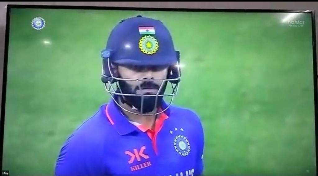 India vs Sri Lanka 1st ODI Match Updates: विराट कोहलीने श्रीलंकेविरुद्धच्या पहिल्या एकदिवसीय सामन्यात (IND vs SL 1st ODI) शानदार शतक झळकावले. हे त्याच्या आंतरराष्ट्रीय कारकिर्दीतील ७३ वे शतक झळकावले. विराटच्या या खेळीच्या जोरावर भारतीय संघाने ३७३ धावांचा मोठा डोंगर उभारला. तसेच पाहुण्या संघाला विजयासाठी ३७४ धावांचे लक्ष्य दिले. या दरम्यान एक व्हिडिओ खूप व्हायरल होत आहे, ज्यामध्ये विराट हार्दिक पांड्याकडे रागाने पाहताना दिसत आहे.