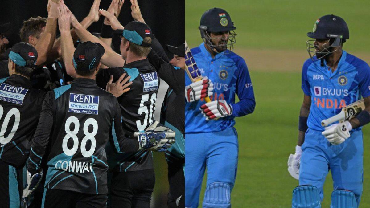 १७७ धावांच्या लक्ष्याचा पाठलाग करताना भारतीय संघ अडचणीत सापडला आहे. संघाने १५ धावांत तीन विकेट गमावल्या आहेत. तिसऱ्या षटकात जेकब डफीने राहुल त्रिपाठीला कॉनवेकरवी झेलबाद केले. त्रिपाठीला खातेही उघडता आले नाही. यानंतर चौथ्या षटकात मिचेल सँटनरने शुबमन गिलला फिन ऍलनकरवी झेलबाद केले. शुभमन सहा चेंडूत सात धावा करून बाद झाला. भारताची धावसंख्या पाच षटकांनंतर ३ बाद ३३ अशी आहे. सध्या सूर्यकुमार यादव आणि कर्णधार हार्दिक पंड्या क्रीजवर आहेत. इशान किशन चार धावा करून पॅव्हेलियनमध्ये परतला.