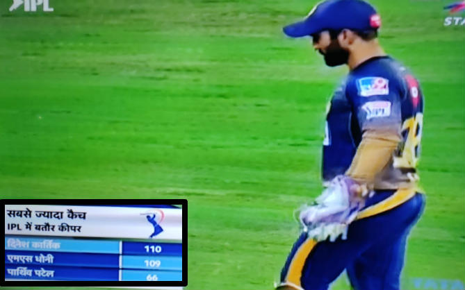 राजस्थानच्या संघाने पॉवर-प्लेच्या षटकांमध्ये तब्बल ५ बळी गमावले. बेन स्टोक्स, रॉबिन उथप्पा, संजू सॅमसन, स्टीव्ह स्मिथ आणि रियन पराग या महत्त्वाच्या फलंदाजांनी स्वस्तात तंबूचा रस्ता धरला. त्यानंतर राहुल तेवातियाने राजस्थानच्या आशा पल्लवित केल्या होत्या, पण वरूण चक्रवर्थीच्या गोलंदाजीवर त्याने कार्तिककडे झेल सोपवला. IPL कारकिर्दीत यष्टीरक्षक म्हणून हा कार्तिकचा ११०वा झेल ठरला. महेंद्रसिंग धोनीने IPL कारकिर्दीत किपिंग करताना आतापर्यंत सर्वाधिक १०९ झेल टिपले होते. तो विक्रम मोडत दिनेश कार्तिकने इतिहास रचला.