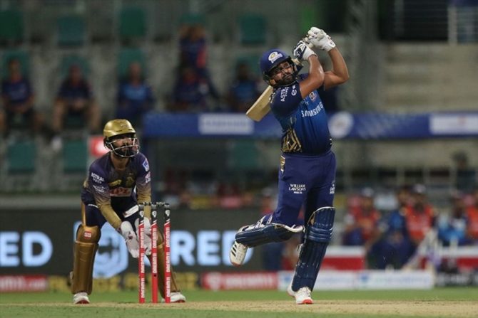 सामन्यात मुंबईचा कर्णधार रोहित शर्मा याने दमदार कामगिरी केली. रोहित शर्माने IPL 2020 च्या लिलावातील सर्वात महागड्या खेळाडू पहिल्याच चेंडूवर षटकार लगावला. तसेच कुलदीप यादवला षटकार लगावत रोहित शर्माने IPLकारकिर्दीतील २०० षटकार पूर्ण केले. रोहितने ३ चौकार आणि ६ षटकारांच्या मदतीने ५४ चेंडूत ८० धावा कुटल्या. त्याचा सहकारी सूर्य़कुमार यादव याने रोहितचं तोंडभरून कौतुक केलं.