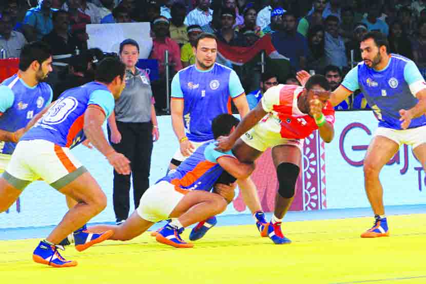 सामन्याच्या पहिल्याच चढाईत कर्णधार अनुप कुमारने संघाला खाते उघडून दिले. त्यानंतर थोडय़ा वेळातच स्थिरस्थावर होत भारताने इंग्लंडच्या केशव गुप्ताची सहाव्या मिनिटाला पकड करत पहिला लोण वसूल केला. त्यानंतर १२व्या मिनिटाला संदीप नरवालने चढाईत दोन खेळाडूंना बाद करत इंग्लंडवर दुसरा लोण चढवला. सामन्याच्या १६व्या आणि २०व्या मिनिटाला लोण चढवत भारताने मध्यंतरापर्यंत ४५-६ अशी मोठी आघाडी घेतली. पहिल्या सत्रात प्रदीप नरवाल आणि अजय ठाकूर यांच्या पकडी प्रभावी ठरल्या, तर सुरजीतने पकडींमध्ये पाच गुण मिळवले. मध्यंतरापर्यंत दमदार आघाडी घेतल्यावर दुसऱ्या सत्रासाठी भारताने संघात चार बदल केले.
