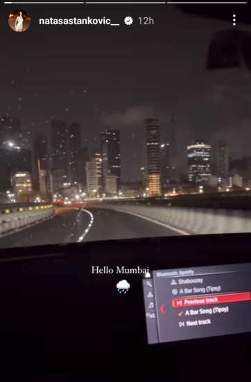 सोमवारी सकाळी सहा वाजता नताशा मुंबईत दाखल झाली. तिने शेअर केलेल्या फोटोंमध्ये तिचा मुलगा अगस्त्य तिच्यासोबत दिसत नाही. अशा परिस्थितीत ती एकटीच मुंबईत आल्याचे समजते. ती मुंबईत पोहोचल्यावर मुंबईच्या पावसाने तिचे स्वागत केले. तिने दोन तासांपूर्वी आपल्या इंस्टाग्रामवर मुंबईच्या रस्त्यांचा व्हिडिओ पोस्ट केला आणि ‘हॅलो मुंबई’ लिहून पावसाचे इमोजी शेअर केले.