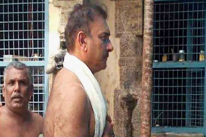 तर दुसरीकडे भारतीय संघाचे मुख्य प्रशिक्षक रवी शास्त्री यांनीही थिरुअनंतपुरम येथील श्रीवेल्लम परसुरामा मंदिराला भेट दिली. यावेळी रवी शास्त्री यांनी काहीकाळ मंदिरात शांत बसून ध्यानही केलं. तसेच शास्त्रींनी आपल्या संघाच्या विजयासाठी या मंदीरात पुजाआर्चाही केल्याचं समजतंय.