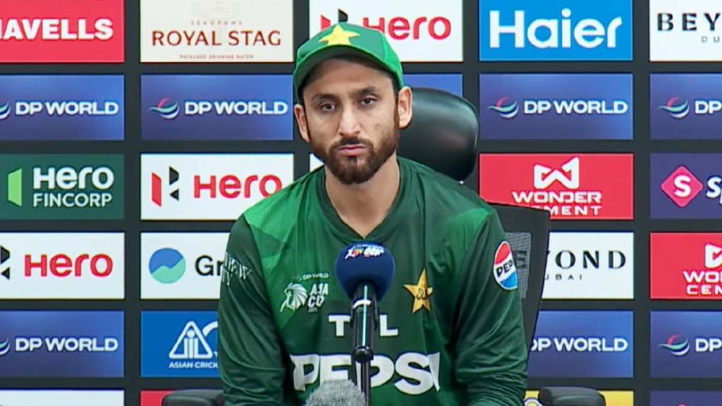 बाबरविषयी विचारलं असता सलमान म्हणाला, ‘माझी अशी इच्छा आहे की मी पत्रकार परिषदेला यावं आणि त्यामध्ये बाबर आझमबद्दल एकही प्रश्न विचारला जाऊ नये. त्याला फलंदाजी करू द्या’, असं उद्गार पाकिस्तानचा कर्णधार सलमान अघाने काढले. ‘संघात बाकी १४ खेळाडू आहेत. त्यांच्याबद्दलही विचारू शकता. हा एक सांघिक खेळ आहे’, असं काहीशा नाराज सलमानने सांगितलं.