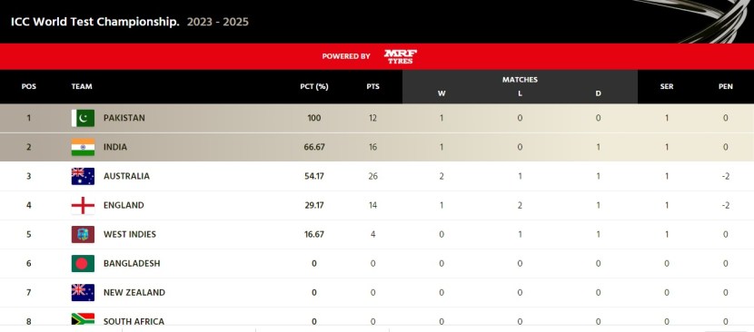 ऑस्ट्रेलिया २६ गुण आणि ५४.१७ पॉइंट टक्केवारीसह तिसर्या आणि इंग्लंड १४ गुण आणि २९.१७ पॉइंट टक्केवारीसह चौथ्या स्थानावर आहे. या दोन्ही संघांनी WTCच्या २०२३-२५ चक्रात प्रत्येकी चार कसोटी सामने खेळले आहेत. ऑस्ट्रेलियाने यापैकी दोन कसोटी जिंकल्या आहेत, एक गमावली आहे, तर एक कसोटी अनिर्णित राहिली आहे. दुसरीकडे इंग्लंडने एक सामना जिंकला आहे, दोन गमावले आहेत आणि एक कसोटी अनिर्णित राहिली आहे.