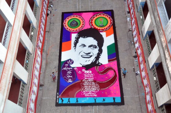 “गेली तीन-चार वर्षे मी मोठ्या रांगोळ्या काढून सचिन सरांना शुभेच्छा देतो, पण यंदा करोनामुळे मोठं आर्ट वर्क तयार करता येणार नाही, याची सुरूवातीला खंत होती. त्यानंतर थोडा विचार केला की आपण घरातच काही तरी करू शकतो. यासाठी माझे मित्र आबासाहेब शेवाळे आणि प्रतीक घुसळे यांच्याशी संवाद साधला. काय करता येईल या संबंधी विचार सुरू केला आणि एक कल्पना सुचली की घरात ज्या वस्तू आहेत त्या वापरून कलाकृती सादर करायची. कलेची आवड असल्याने घरात वेगवेगळ्या रंगाचे कागद होतेच. मग ठरवलं की अशी कलाकृती करूया ज्यामधून करोना बद्दल संदेश देता येईल”, अशा भावना अभिषेकने व्यक्त केल्या.