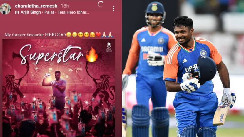दक्षिण आफ्रिकेविरुद्धच्या चार सामन्यांच्या टी-२० मालिकेतील पहिल्या सामन्यात संजू सॅमसनच्या बॅटमधून दमदार शतक झळकावले. त्याने ५० चेंडूत १०७ धावांची शानदार खेळी करत संघाच्या विजयाचा पाया रचला. या खेळीत संजूने एकूण १० षटकार आणि ७ चौकार लगावले. अवघ्या २७ चेंडूत अर्धशतक पूर्ण केल्यानंतर त्याने ४७ चेंडूंत आपले दुसरे टी-२० शतक पूर्ण केले. या शानदार शतकानंतर पत्नी चारुलताने एक खास इंस्टाग्राम स्टोरी पोस्ट केली आणि संपूर्ण जगाला सांगितले की तिचा हिरो कोण आहे.