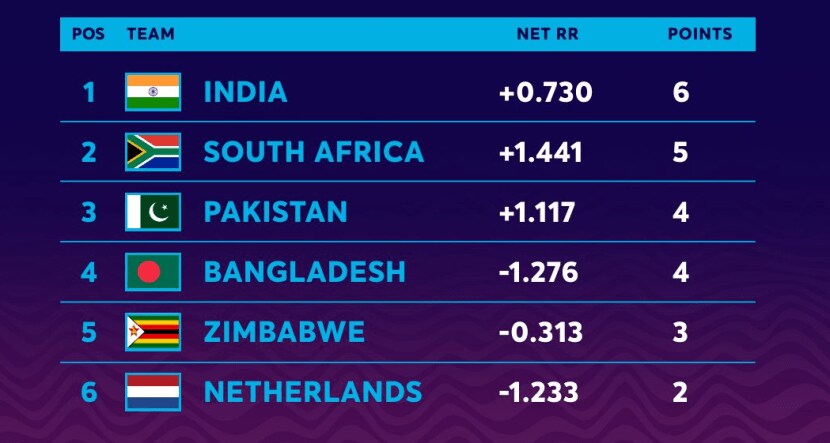 सध्यातरी दुसऱ्या गटामधून भारत आणि दक्षिण आफ्रिकाच उपांत्यफेरीमध्ये प्रवेश करतील असं चित्र दिसत आहे. दुसऱ्या गटातील अव्वल संघ पहिल्या गटातील दुसऱ्या क्रमांकाच्या संघाशी खेळणार आहे. त्यामुळेच झिम्बाब्वेविरुद्धचा सामना भारताने जिंकला तर भारताला दुसऱ्या स्थानावरील संघाशी उपांत्यफेरीत खेळावं लागेल. भारताकडे सध्या सहा गुण आहेत. शेवटचा सामना जिंकून ते आठ गुणांसहीत अव्वल स्थान कायम राखू शकतात. तर दक्षिण आफ्रिकेकडे चार सामन्यांमध्ये पाच गुण आहेत.