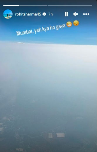 रोहित शर्माने विमानातून प्रवास करताना वरून हे छायाचित्र काढले आहे. त्याने लिहिले, ‘मुंबईत हे काय झाले?’ गेल्या काही दिवसांपासून मुंबईतील हवामान चिंतेचे कारण बनले आहे. प्रदूषणामुळे लोक हैराण झाले आहेत. रोहित शर्मापूर्वी इंग्लंडचा अनुभवी फलंदाज जो रूटनेही चिंता व्यक्त केली होती.