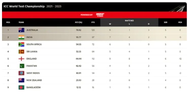भारत सध्या ५५.७७ टक्क्यांसहीत दुसऱ्या स्थानी आहे. भारताने १३ पैकी ७ सामने जिंकले आहेत. तर दोन सामने अनिर्णित राहिले आहेत. दक्षिण आफ्रिकेचा ऑस्ट्रेलियाकडून दारुण पराभव झाल्याने त्यांची क्रमवारीत मोठी घसरण झाली आहे. दक्षिण आफ्रिकेची टक्केवारी ५४.५५ इतकी आहे. श्रीलंकेची या गुणतालिकेमध्ये एका स्थानेने घसरण झाली असून ते सध्या चौथ्या स्थानावर आहेत. त्यांच्या विजयाची टक्केवारी ५३.३३ इतकी आहे.