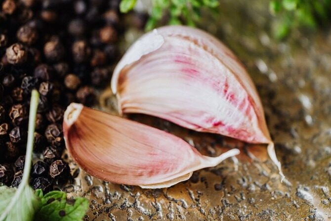- एक लसूण घ्या. तिचे मधोमध २ तुकडे करा.