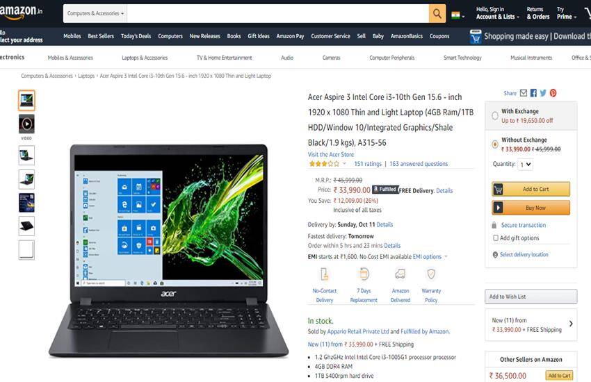 तुमचं बजेट ३५ हजार रुपयांपेक्षा कमी असेल तर तुम्ही Acer Aspire 3 या लॅपटॉपचा विचार करु शकतात. हा लॅपटॉप अमेझॉनच्या संकेतस्थळावर उपलबद्ध असून यावर २६ टक्केंची सूट आहे. डिस्काउंटनंतर Acer Aspire 3 या लॅपटॉपची किंमत ३३ हजार ९९० रुपये आहे. याआधी हा लॅपटॉप ४५ हजार ९९० रुपयांना होता. Acer Aspire 3 या लॅपटॉपवर १२ हजार ९ रुपयांची सूट आहे.