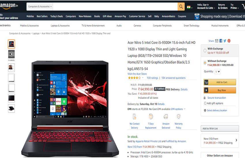 Acer Nitro 5 या लॅपटॉपवर 41 टक्केंची सूट देण्यात आली आहे. एक लाख ९ हजार ९९९ रुपयांचा Acer Nitro 5 हा लॅपटॉप ६४ हजार ९९० रुपयांना मिळतोय. Acer Nitro 5 या लॅपटॉपवर ४५ हजार ९ रुपयांची सूट मिळतेय.