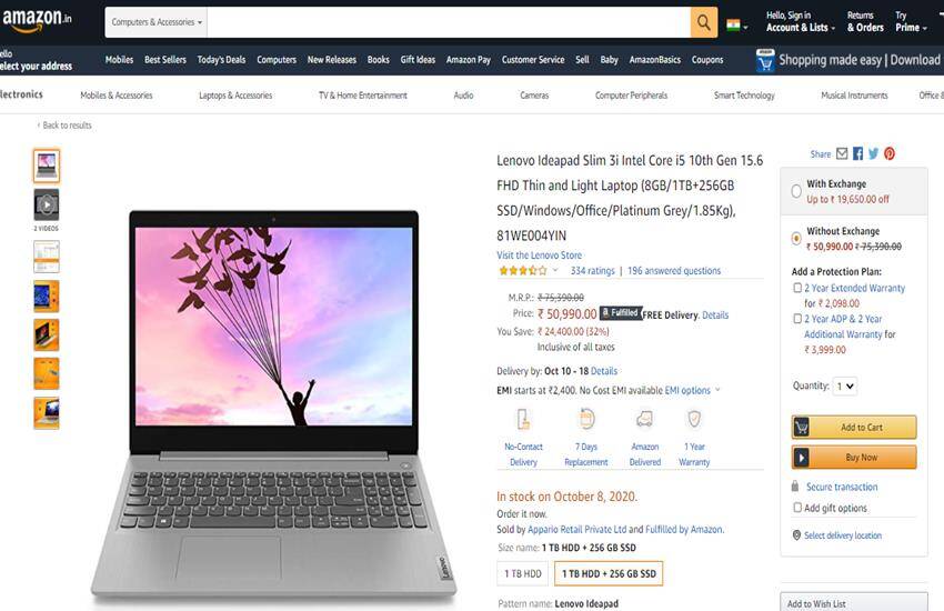 ५० हजार रुपयांपर्यंतचं तुमचं बजेट असेल तर अमेझॉनवर Lenovo Ideapad Slim 3i हा लॅपटॉप विकत घेऊ शकता. लॅपटॉपमध्ये इंटेल कोर आय 5 प्रोसेसर, 15.6 इंच फुल एचडी (1920×1080 पिक्सल) डिस्प्ले आहे. तसेच एंटी-ग्लेयरसह 8 जीबी रॅम, 1 टीबी हार्ड डिस्क आणि 256 जीबी एसएसडी स्टोरेज, प्री इंस्टॉल्ड एमएस ऑफिस होम एण्ड स्टूडेंट 2019 आहे.