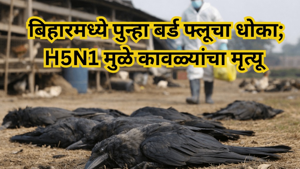 Bird Flu Threat Resurfaces in Bihar : बिहारमध्ये बर्ड फ्लूचा धोका पुन्हा डोकेवर काढताना दिसत आहे. पटना येथील पोल्ट्री फार्ममध्ये संसर्गाची प्रकरणे वाढू लागल्याने प्रशासन सतर्क झाले आहे. बुधवारी खबरदारीचा उपाय म्हणून सुमारे सहा हजार पोल्ट्री पक्ष्यांना ठार करून जमिनीत पुरण्यात आले. यंदा प्रथमच अत्यंत संसर्गजन्य मानला जाणारा एव्हियन इन्फ्लुएंझा H5N1 हा विषाणू कावळ्यांकडून पोल्ट्री पक्ष्यांमध्ये पसरल्याचे समोर आले आहे.