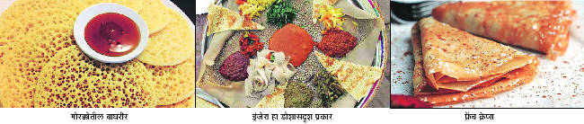 असाच एक पदार्थ खुणावत राहतो. दशलक्ष डोळ्यांनी खाणाऱ्याला स्वत:कडे आकर्षति करत राहतो! हा पदार्थ खरे तर दिसतो हुबेहूब नीर डोशासारखा मात्र जातकुळी म्हणाल तर रवा डोशाची! हा पदार्थ आहे बाघरीर (Baghrir) मोरक्कोमधील माघ्रेब प्रांतातला हा पदार्थ म्हणजे रवा आणि किंचित मदा घालून बनवलेला डोसाच जणू! हे आंबवलेले मिश्रण, तापलेल्या तव्यावर गोलसर घालून यावर एक सुरेख जाळी तयार होईपर्यंत थांबतात. पिठाला अनेक भोकं पडली म्हणजे या बाघरीरला डोळे फुटले असेच समजतात. जितके जास्त डोळे, तितका हा पदार्थ आकर्षक होतो. या बाघरीरसोबत फळांचा मुरंबा आणि तत्सम गोडाचे पदार्थ खातात. कधी मध आणि लोण्याच्या मिश्रणासोबत हा पदार्थ खाल्ला जातो. रमजानच्या पवित्र महिन्यात हा जास्त करून खाल्ला जातो. जास्त करून न्याहारीला हा पदार्थ बनवला जातो. असा हा बाघरीर